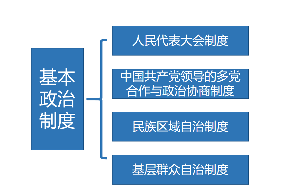 在我国,以宪法规定为基础的建立的人民代表大会制度、中国共产党领导的多党合作和政治协商制度、民族区域自治制度以及基层群众自治制度,构成了我国政治制度的核心内容和基本框架,集中体现了我国社会主义民主政治制度的特色。
