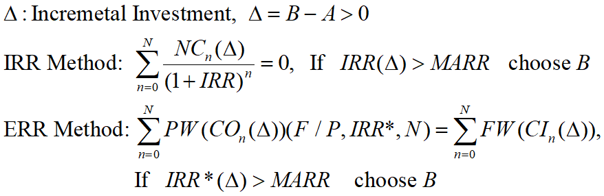 Incremental Cash Flow: The differences of cash flows of two alternatives.