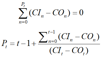 The time it takes to pay back the investment, i.e., the number of years required for CIs to be just equal to COs.