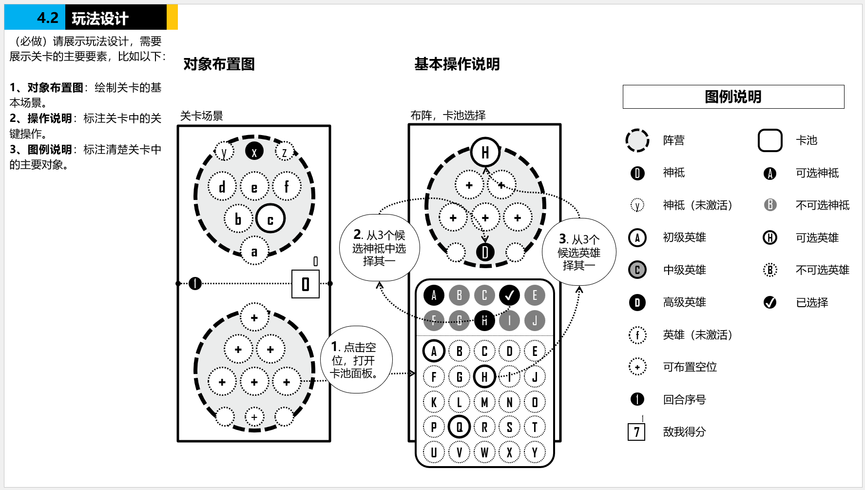 2.1,提炼对象布置图:(1)获取关卡原始资料;(2)简化关卡场景;(3)规范对象画法;(4)标注逻辑关系;(5)附加必要标识。