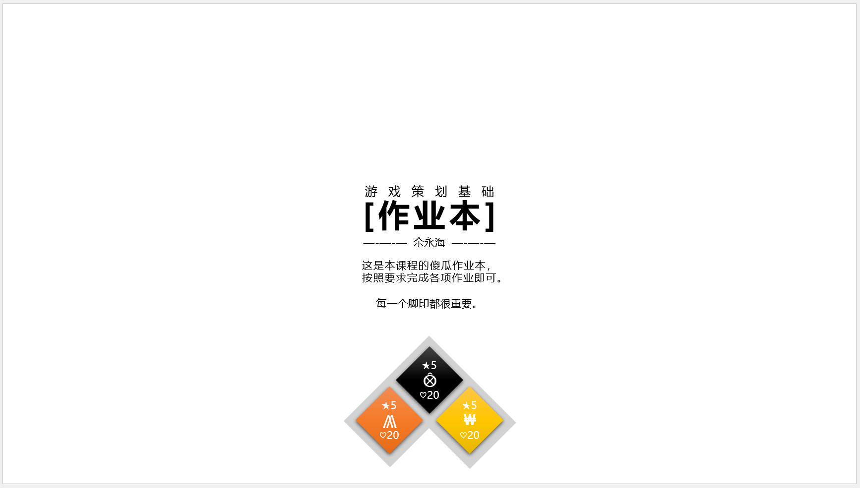 (2)【游戏策划基础】,第二周,作业本。录制文件:视频文件。
