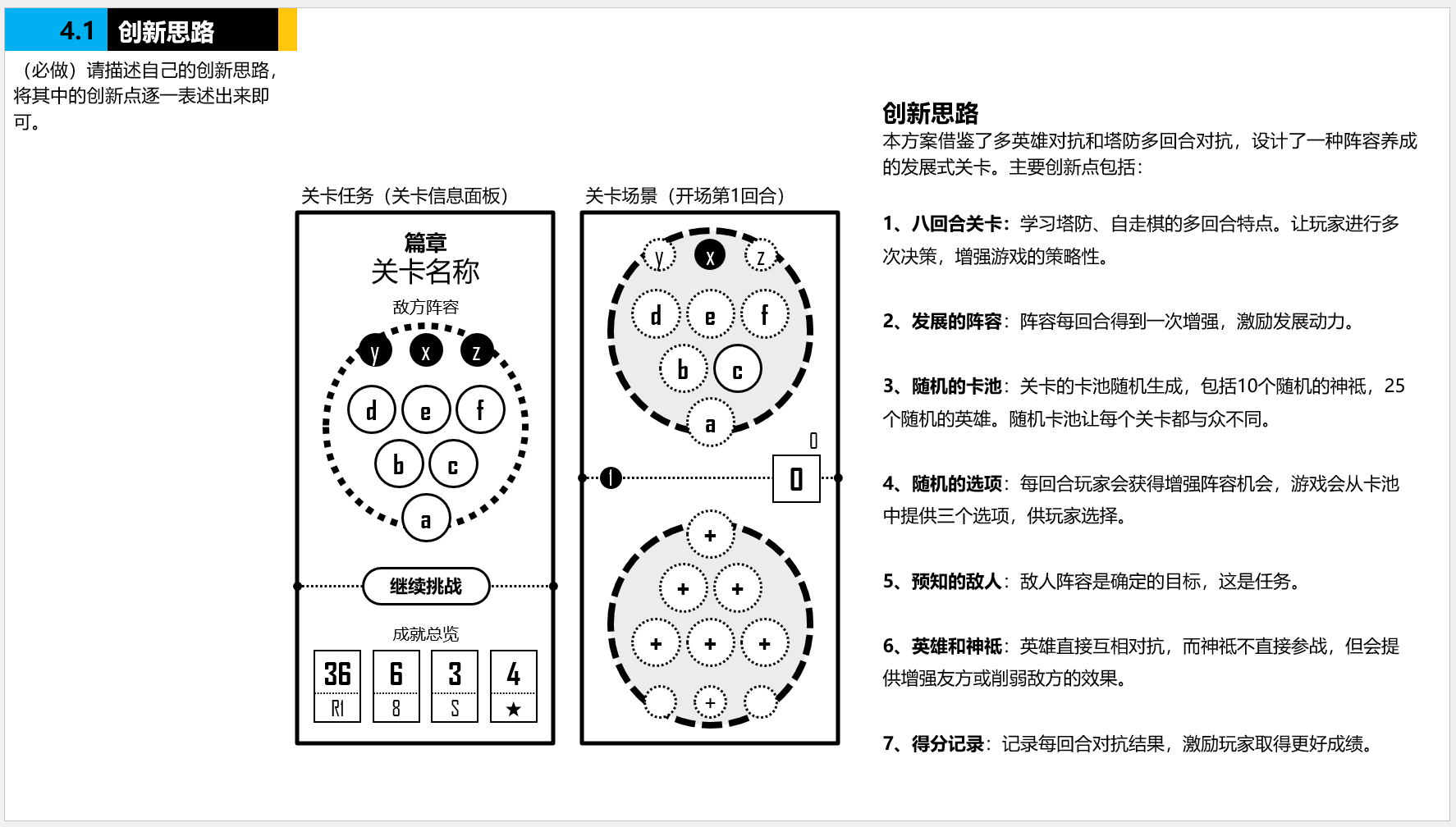 设计创新部分主要完成2个主要任务,一是一种关卡玩法的改进和创新,二是一种发展棋盘的改进和创新。主要任务如下: