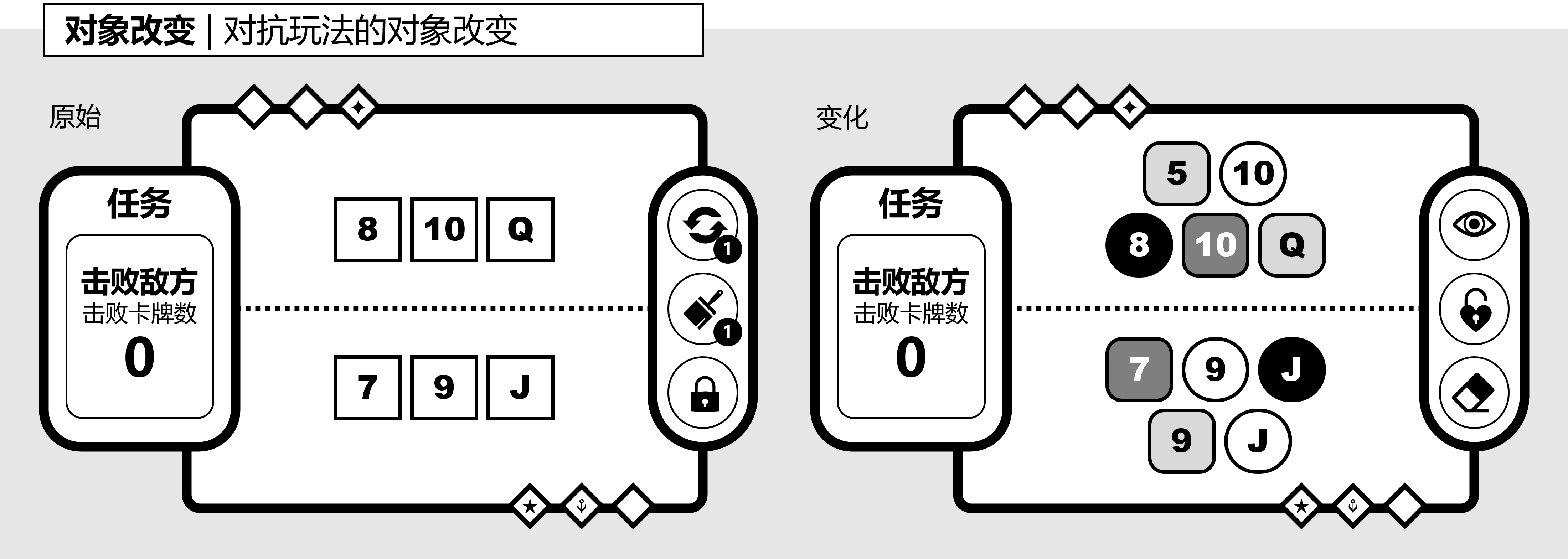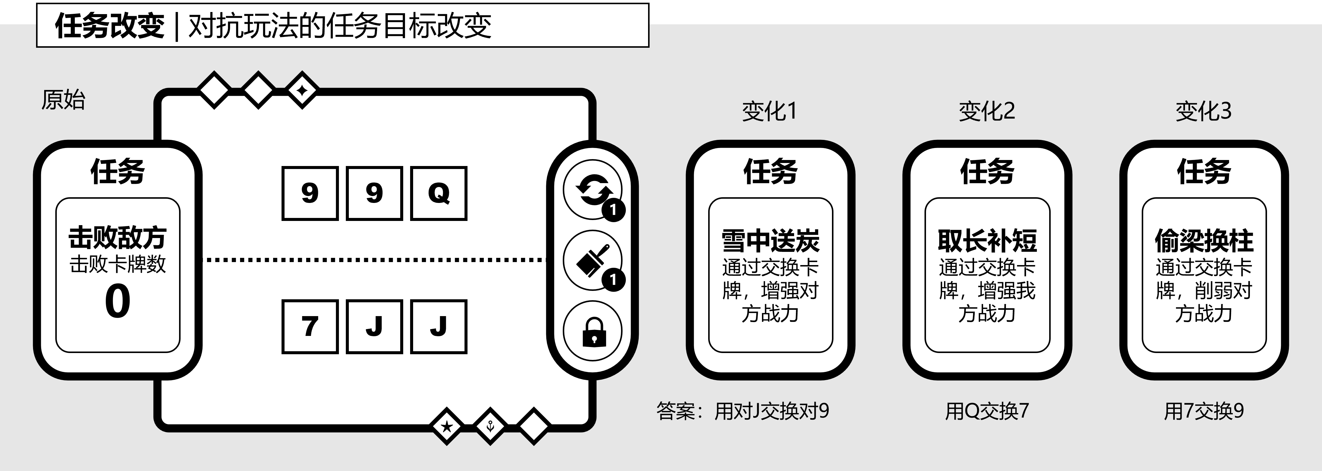 图4-2-4,扑克牌玩法的衍生变化:通过对象的改变来创新。