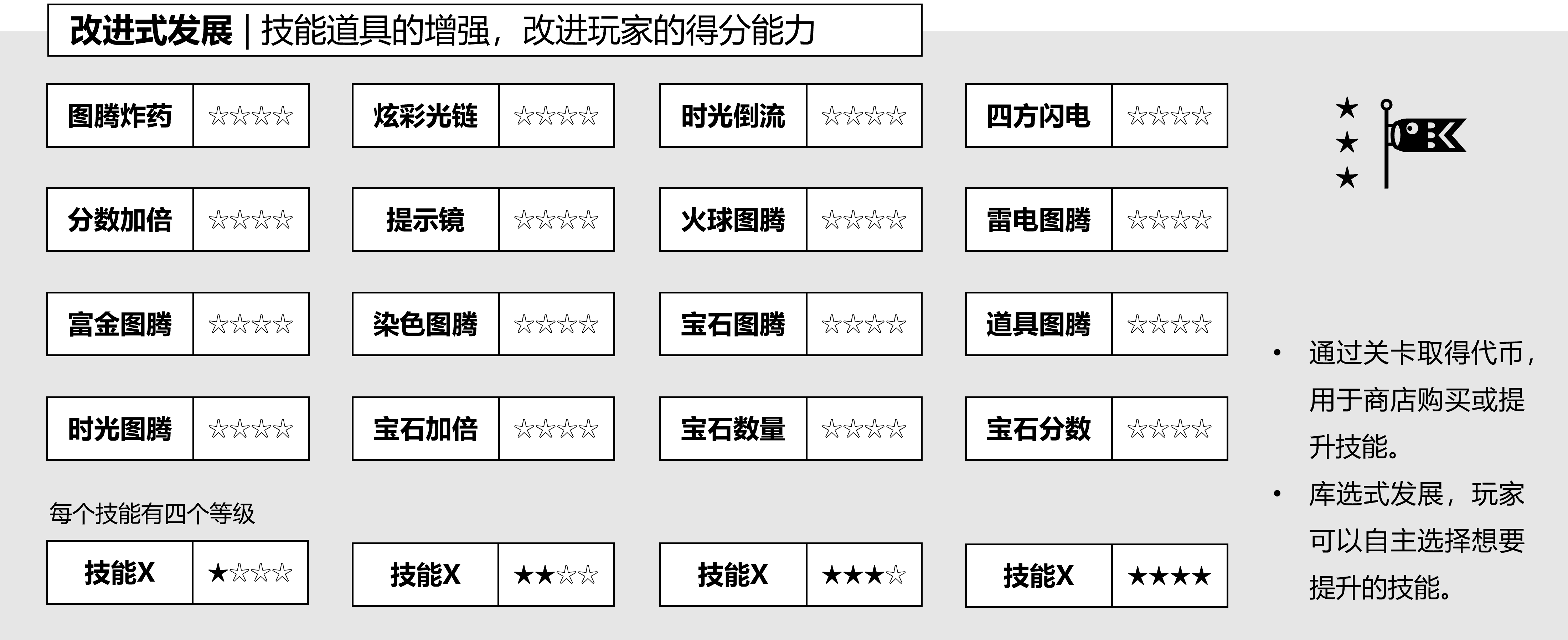 (2)功能的增强:工具和功能是可以不断增强迭代的,玩家只要不断改进功能和工具,用更好的功能或工具替代较差的,就可以增强解决问题的办法。