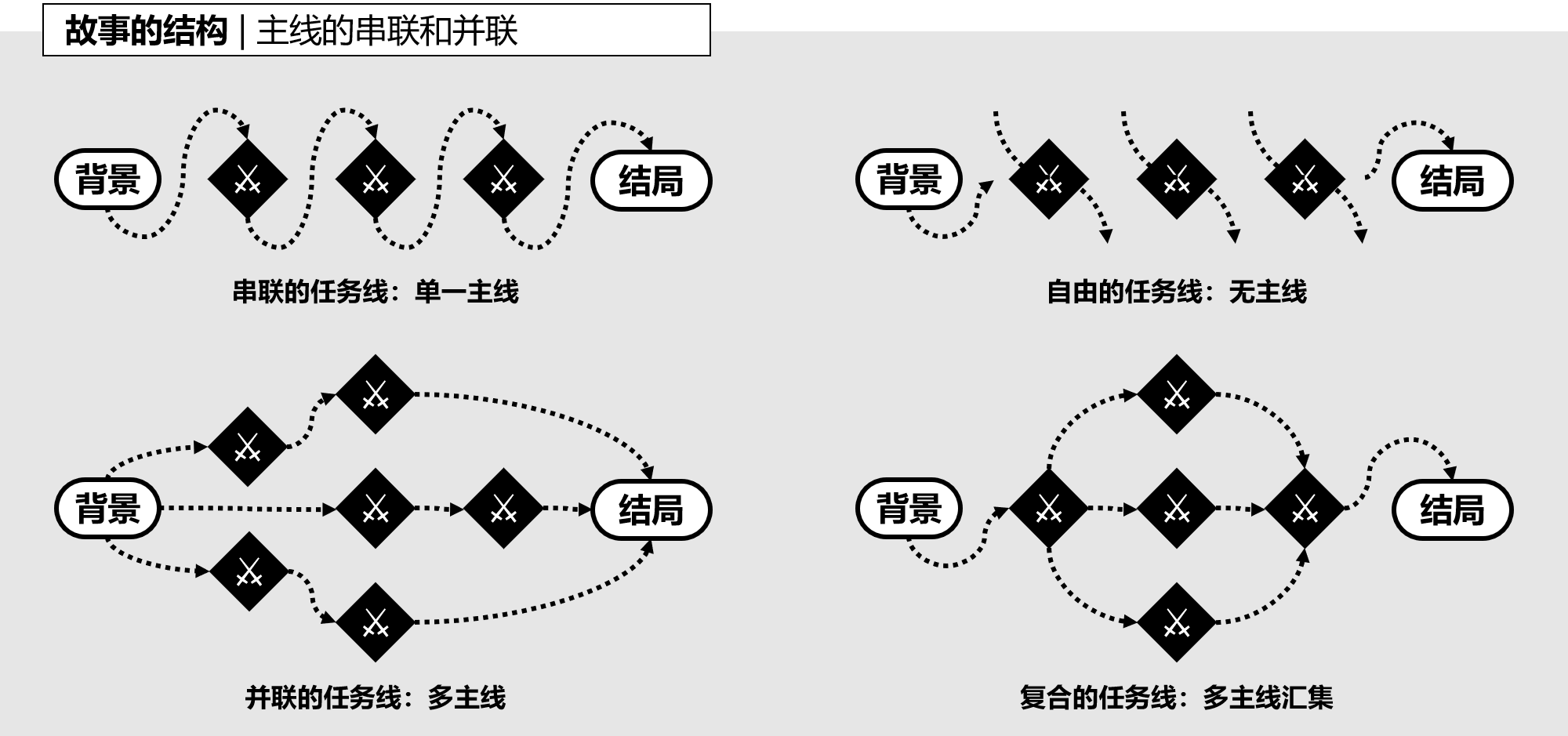 无论哪一种主线结构,最终目的都是通过剧情推动玩家发展。