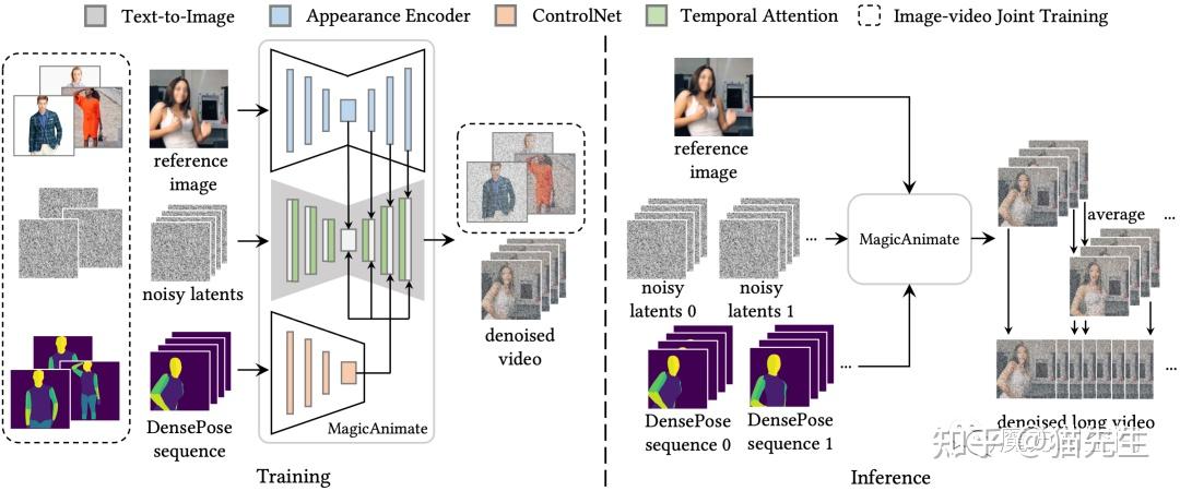 一种基于扩散的框架,旨在增强时间一致性、忠实地保留参考图像并提升动画保真度。为了实现这一目标,首先开发了一个视频扩散模型来编码时间信息。其次,为了在帧之间保持外观一致性,引入了一种新颖的外观编码器,以保留参考图像的复杂细节。借助这两项创新,进一步采用了一种简单的视频融合技术,以促进长视频动画的平滑过渡。