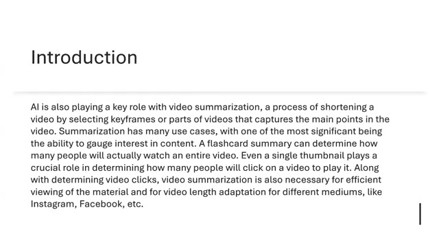 视频摘要旨在通过缩短视频长度,提供关键信息,从而提高观看效率。