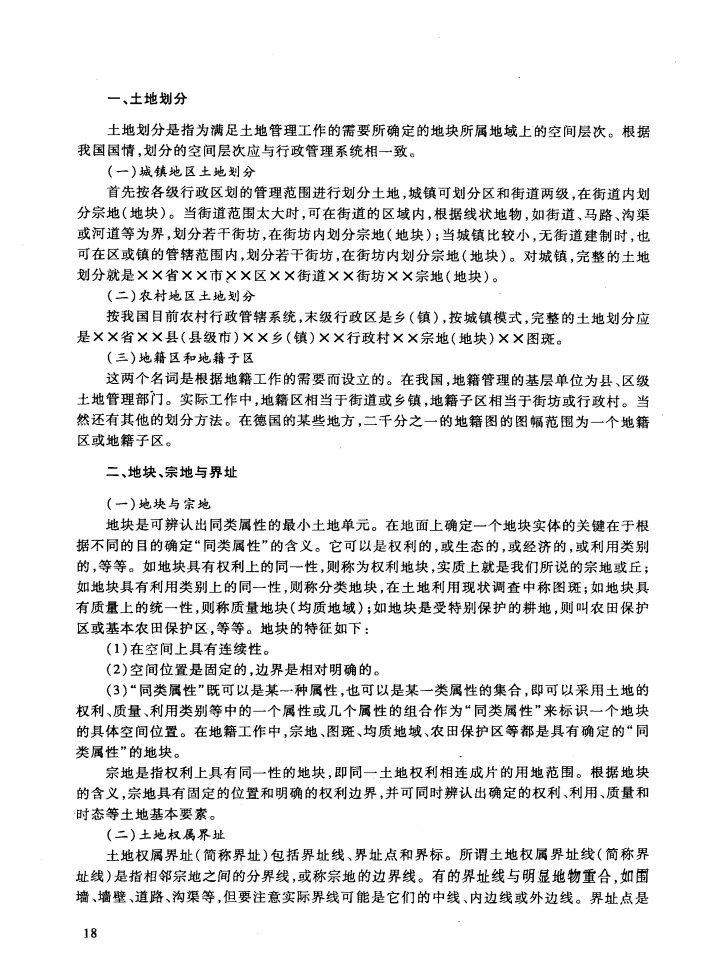 1、土地划分:为满足土地管理工作的需要所确定的地块所属地域上的空间层次