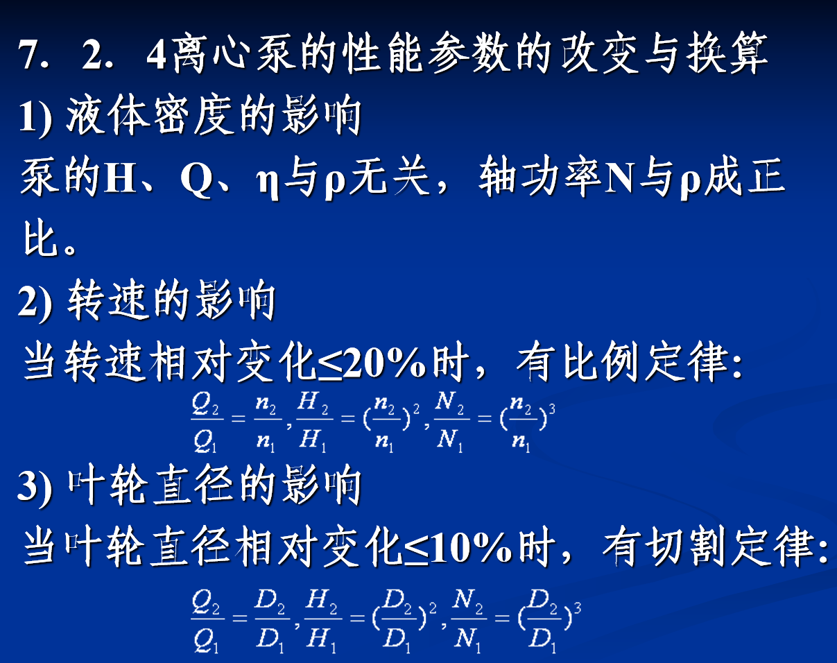 其中,离心泵的性能参数的改变与换算如下图所示: