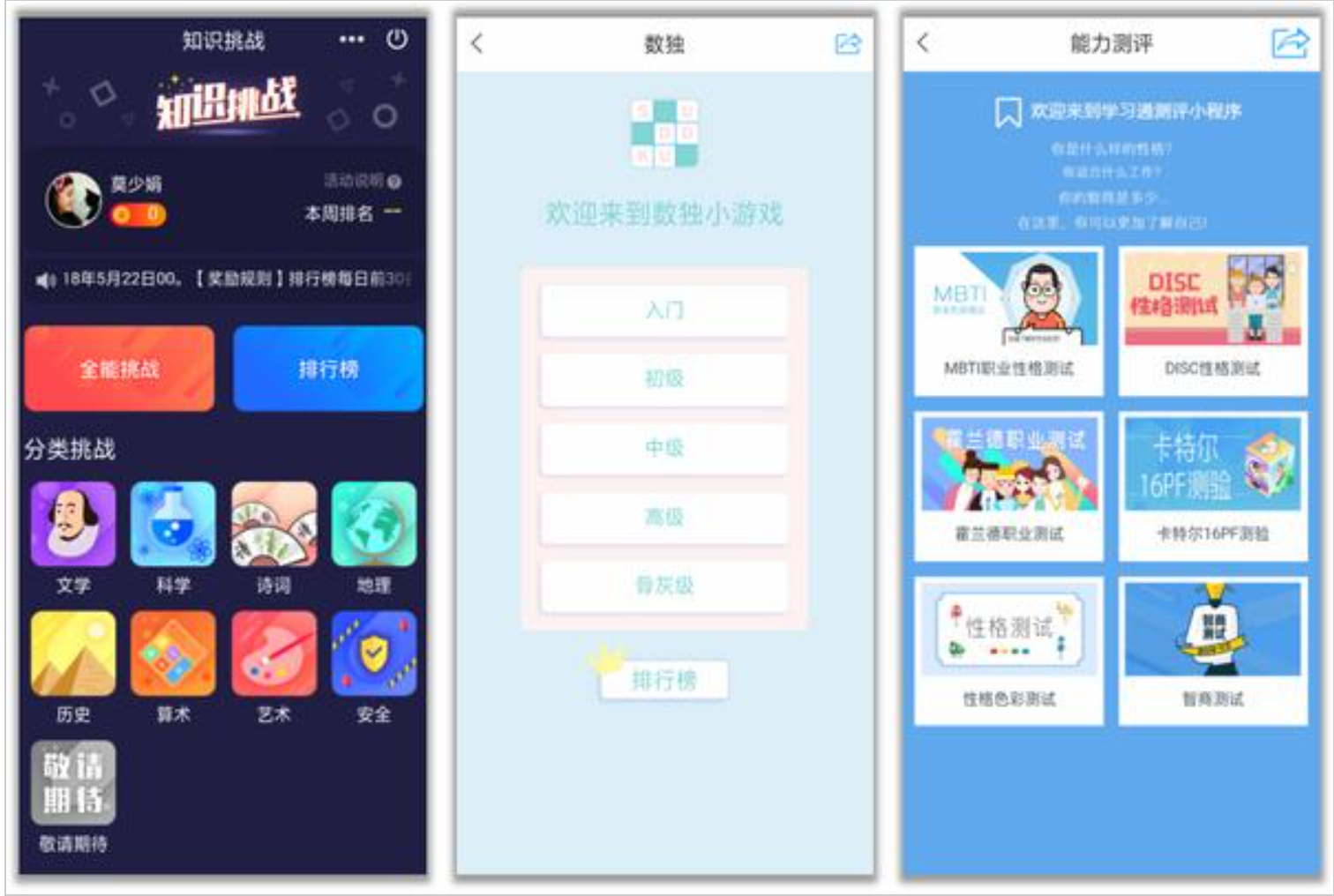 【小程序】知识挑战、数独、能力测评、读书报告、请假、外出签到、表单采集、论文检测