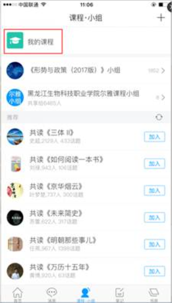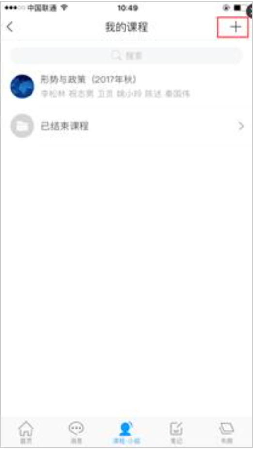点击“我的课程”弹出页面点击页面右上方的“+”号 如图: