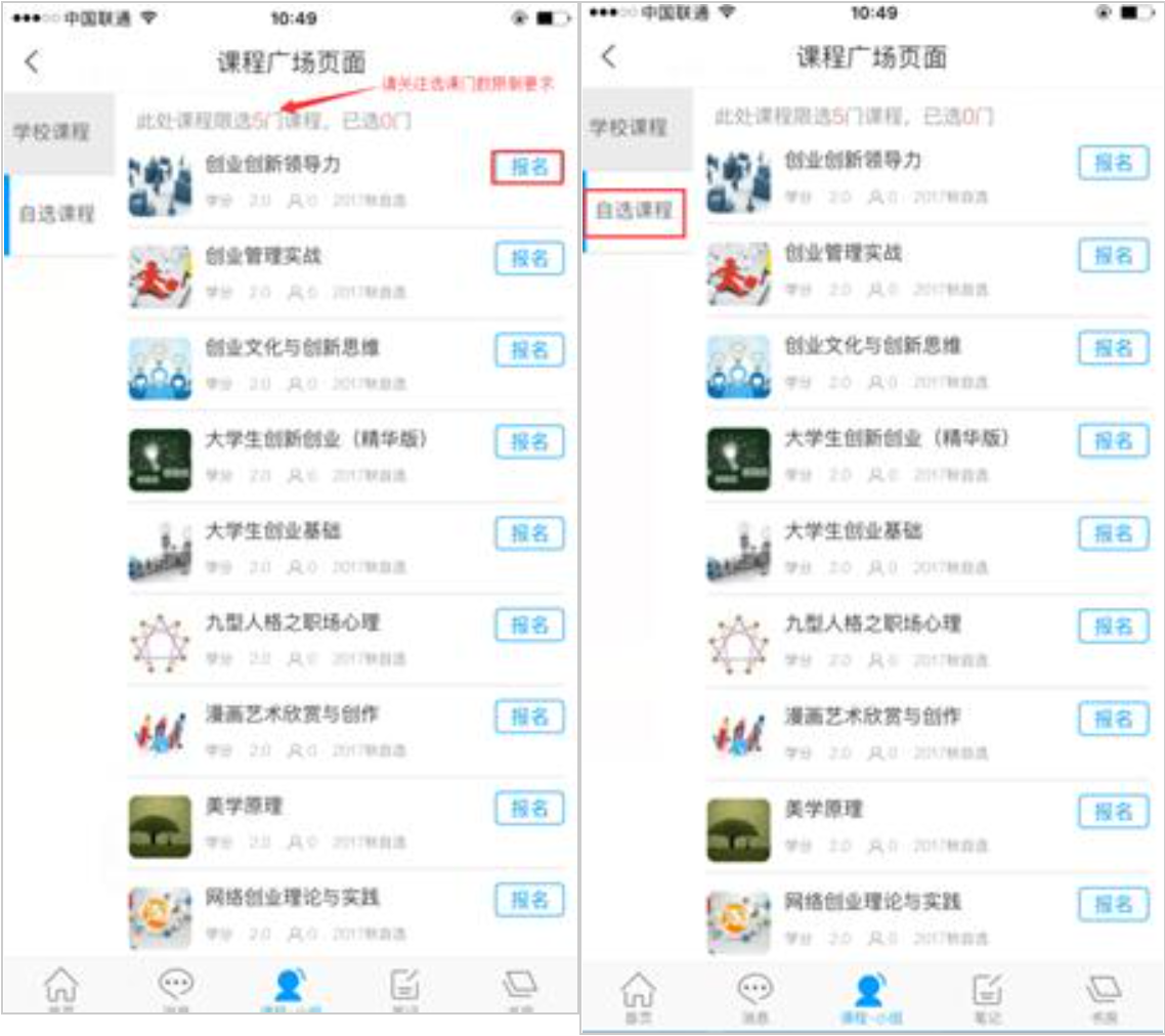 弹出“课程广场页面”-选择自己喜欢的课程点击“报名”按钮即可。