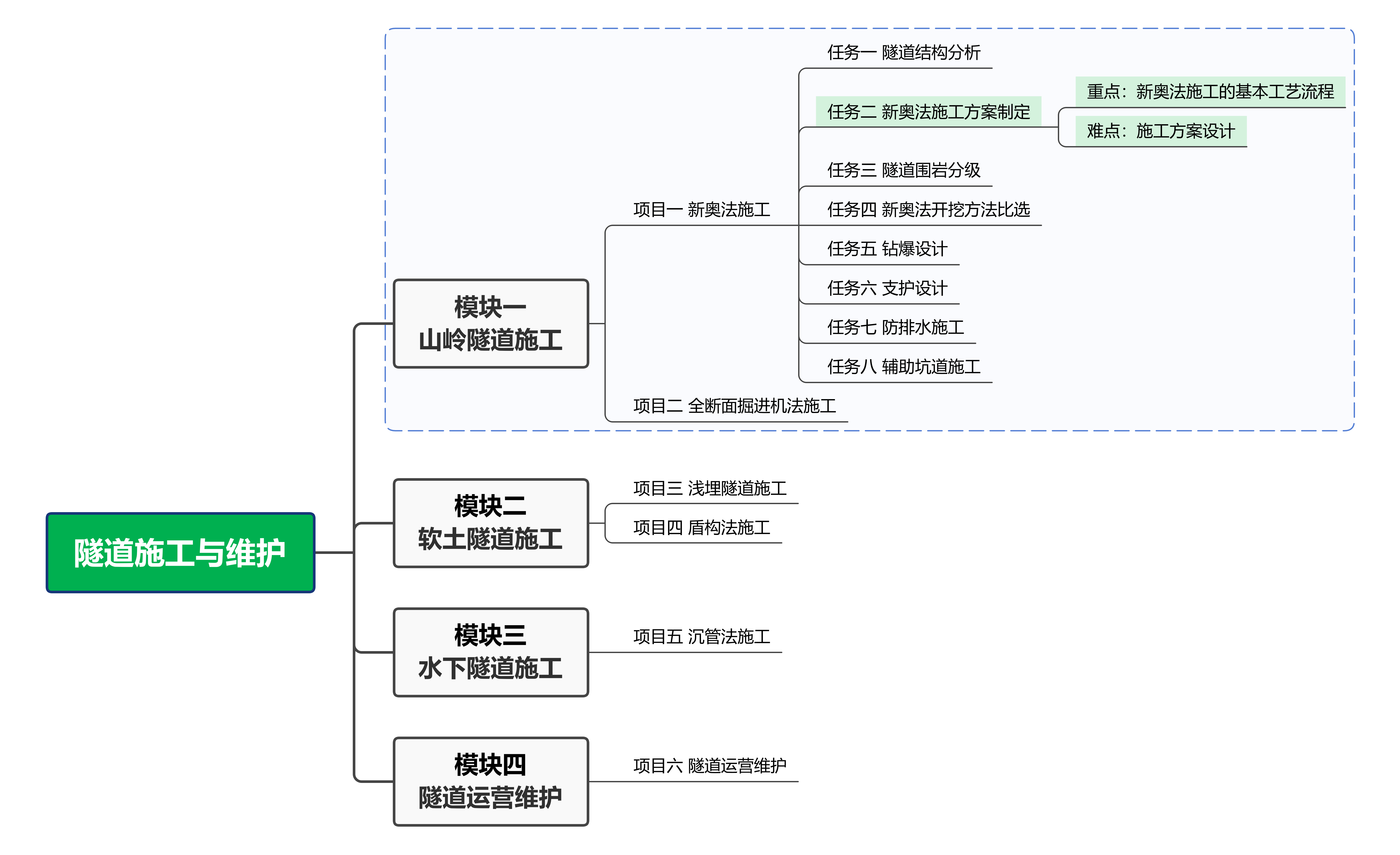 本单元需要同学们了解新奥法施工的基本方法,能够掌握隧道新奥法施工的基本原理,尤其是新奥法的适用条件,能够根据不同的隧道围岩情况,进行隧道施工方案设计。