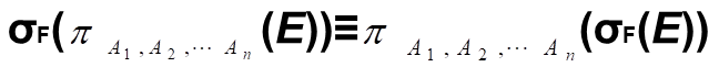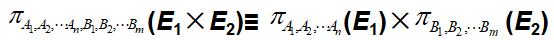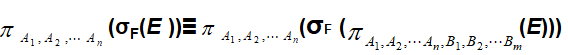 l 如果F=F1∧F2,并且F1只涉及E1中的属性,F2只涉及E2中的属性,则由上面的等价变换规则1,4,6可推出: