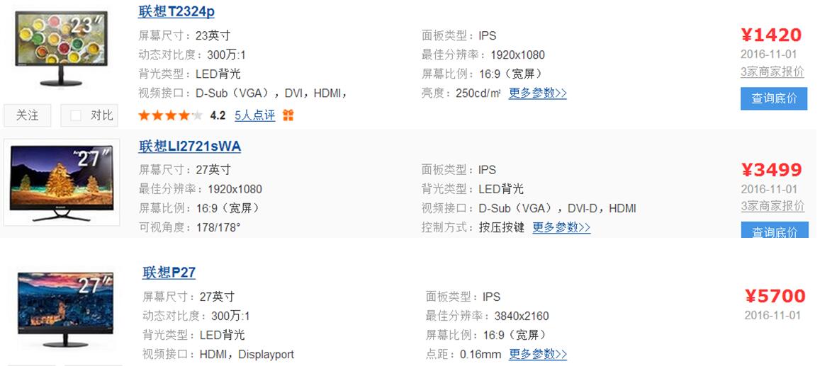 (1)类型:LED、LCD(液晶)、CRT(“大头机”)