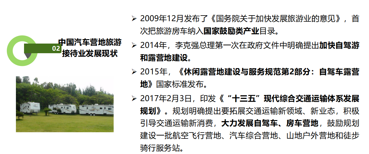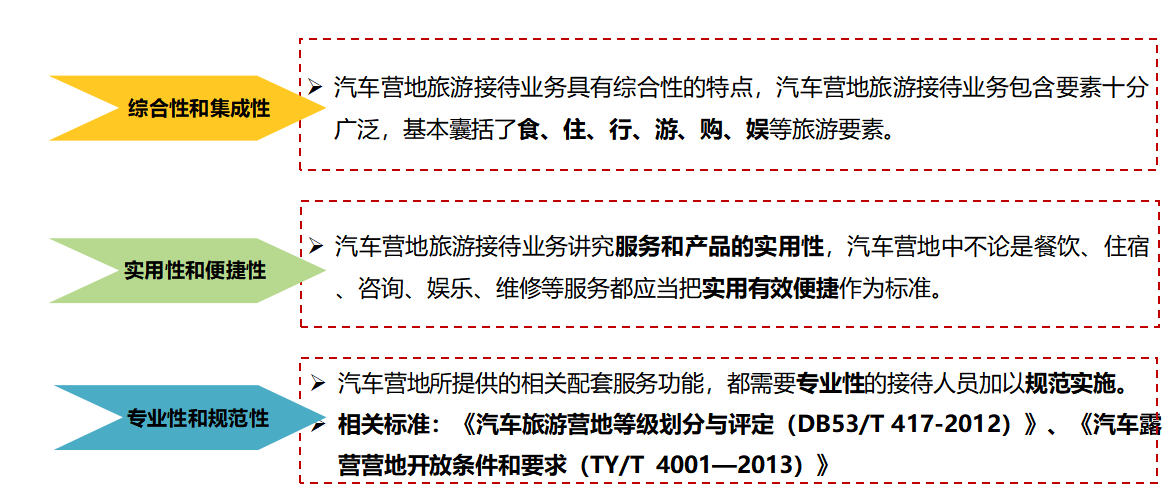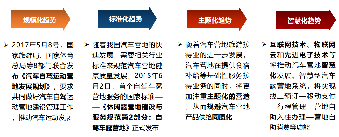 按照自驾车型划分,包括普通汽车营位、自行式房车营位、拖挂式房车营位等三种类型。