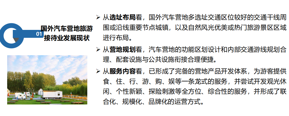 ①景区驱动型。以著名景区为核心吸引物,在景区内部或周边区域规划建设汽车营地。