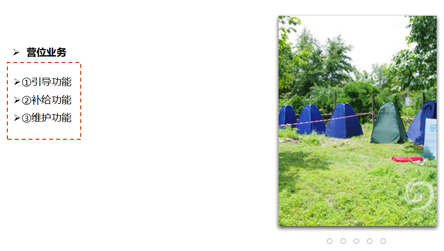 ②营舍区:由房车、帐篷或富有特色的住宿设施等组成的一个个相对独立的生活空间;