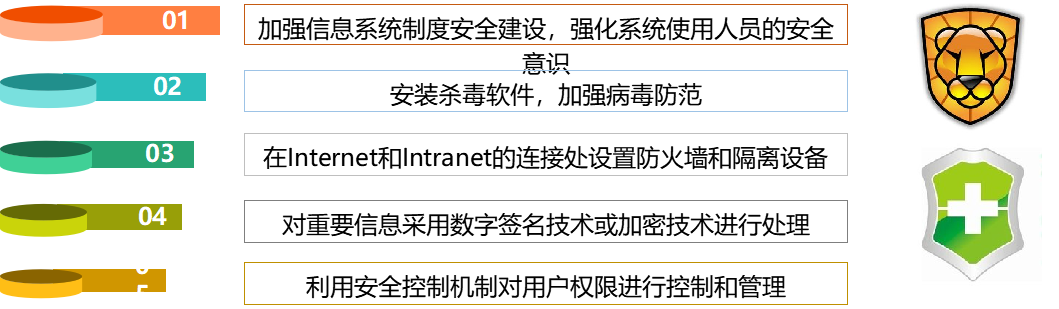 目前最为流行的一种方式是以数据加密为基础,采用防火墙、用户认证、数字签名、存取控制等手段对信息系统中较为重要的数据进行保护。对于一般的旅游接待业组织而言,通常采取以下措施:
