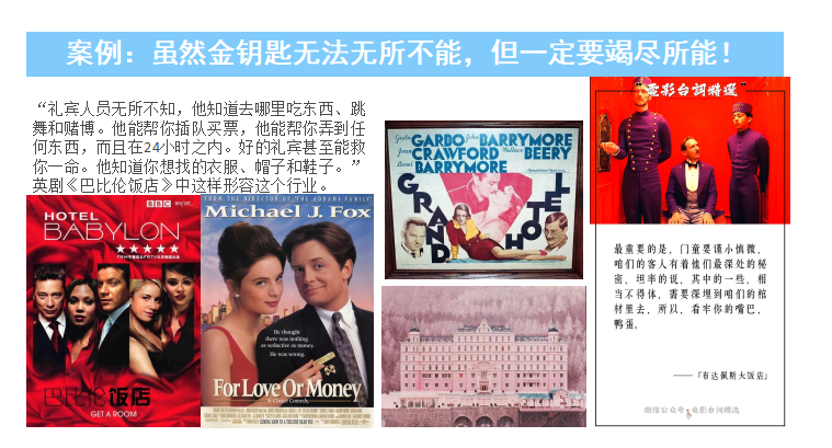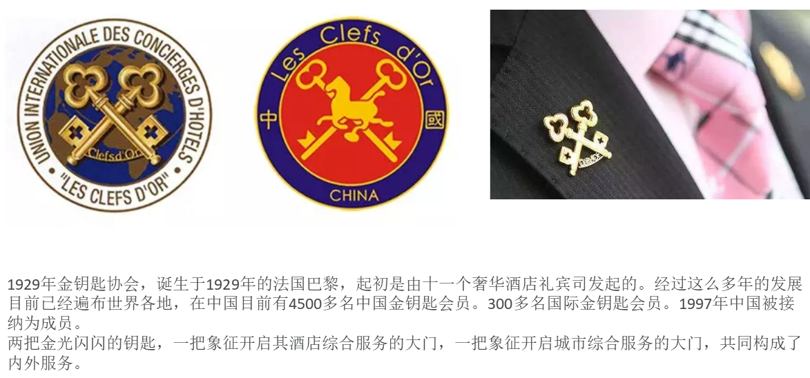 1.金钥匙组织:是一个国际化的民间服务组织:国际金钥匙组织(UICH"("Union Internationale Des Concierges D'hotels"));
