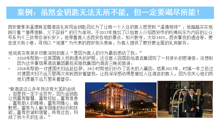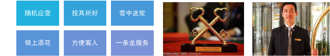 3.金钥匙服务:是一种专业化的饭店服务品牌,是一个服务的网络。