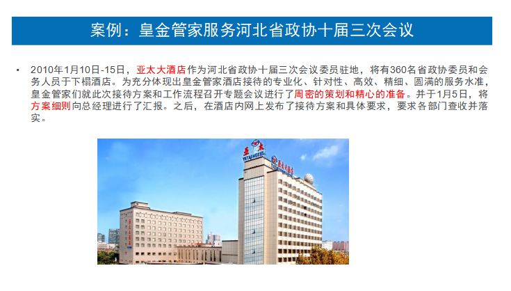 皇金管家致力于成为全球酒店和物业优质服务的代名词,致力于成为享誉全球的知名服务品牌。