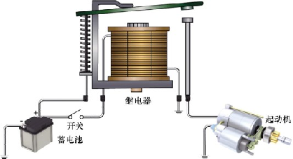 当接通开关时,小电流从蓄电池+→开关→继电器线圈→搭铁→蓄电池-形成回路,电流流经线圈产生磁场,吸引衔铁,使动触点与静触点接通;大电流从蓄电池+→继电器触点臂→动触点→静触点→起动机,起动机运转。