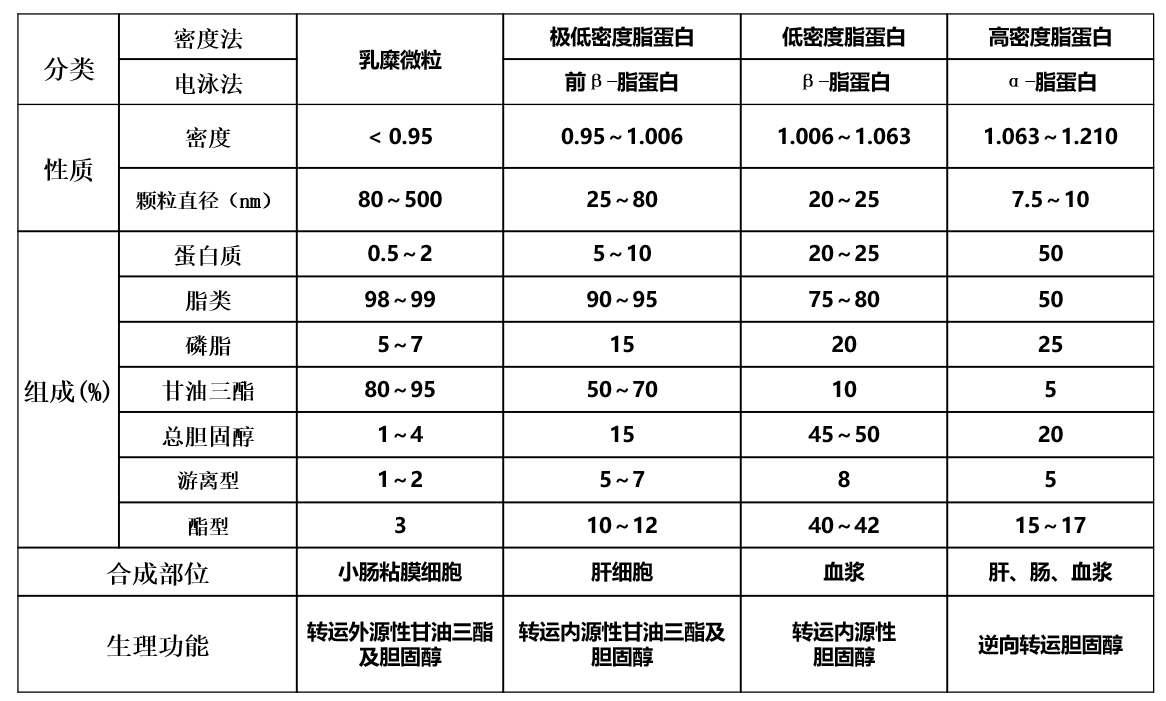 血浆脂蛋白分类