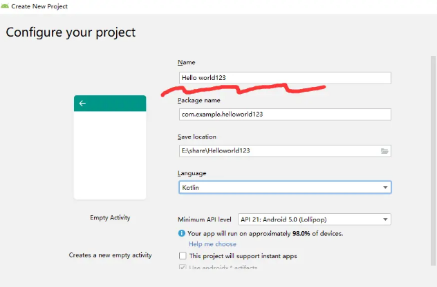 首先我们打开Android studio 新建一个项目,(如下图)-(名字随便)