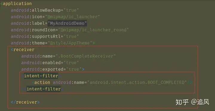 上面程序的广播实现在onCreate方法中,这意味着程序必须打开才能接收到广播。