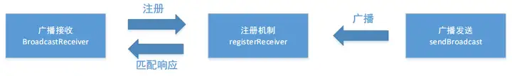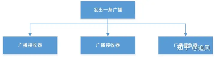 这和买彩票的流程是完全一致的,对于广播的发送者而言,自身只需要定义一条信号发出后就可以不用管了。而接收者作为被动接收方,它首先需要声明自己"想接收到什么信息",再进行注册,这样当广播信号传递时,它会根据自身想接收的信号与传递来的信号进行匹配,匹配成功就会响应这个信号。例如Android系统是图中的广播发送方,在低电量的时候,触发低电量广播,任何一个注册监听了系统低电量广播的程序都会响应这条广播。