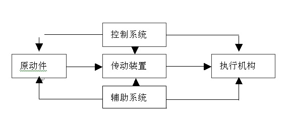 从功能方面而言,一般的机器由原动件、传动装置、执行机构、控制系统和辅助系统等组成,如图1.2所示。原动件可以采用人力、蓄力、风力、液力、电力、热力、磁力以及压缩空气等作为动力源,而利用电力和热力的原动机(电动机和内燃机)使用最广泛。传动装置和执行机构由各种机构组成,是机器的主体,其中传动装置是在原动件与执行机构之间传递运动、转换运动方式的装置。控制系统包含计算机信息处理、传感器、电气装置以及液压、气动系统等,还包括各种控制装置。辅助系统包含空调、音响与视频系统等。