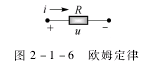 U=RI,R称为电阻,电阻的单位为 Ω(欧),如图2-1-6。