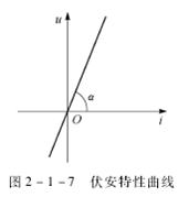 线性电阻 R是一个与电压和电流无关的常数。如图 2-1-7 所示伏安特性曲线,R∝taNα。电阻元件的伏安特性为一条过原点的直线。