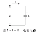 对某一个电容器来说,电荷量与电压的比值是一个常数,但对于不同的电容器,这个比值一般是不相同的。因此,可以用这一比值来反映电容器储存电荷的能力,我们称之为电容器的电容,用符号C表示。如图 2-1-11所示。