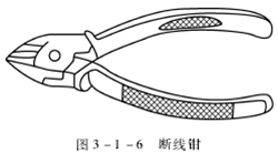 断线钳又称斜口钳,专供剪断较粗的金属丝、线材及导线电缆时使用。断线钳的外形如图3-1-6所示。