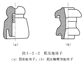 低压架空线路用绝缘子有针式绝缘子和蝴蝶型绝缘子两种,用于在电压 500V以下的交、直流架空线路中固定导线,图 3-2-2 所示即为低压绝缘子。