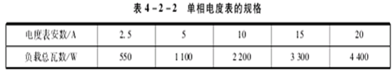 感应式单相电度表有十几种型号,虽然其外形和内部元件的位置可能不同,但使用的方法及工作原理基本相同。其常用的额定电流有5A、10A、15A、20A等规格。常见单相电度表的规格见表4-2-2。