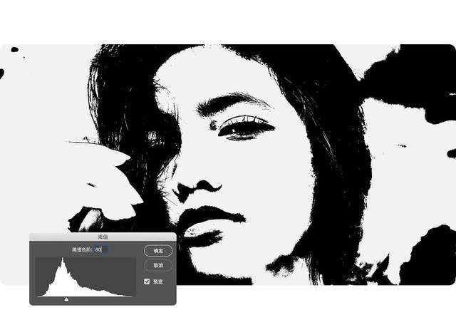 选择“图像”“调整”“阈值”命令,打开“阈值”对话框,可以将灰度或彩色图像转变为高对比度黑白图像,你可以在“阈值”对话框中自定义一个阈值色阶,它是一个临界值,图中所有比它亮的像素都将变为白色,比它暗的像素都将变为黑色,按此原则生成黑白图像。