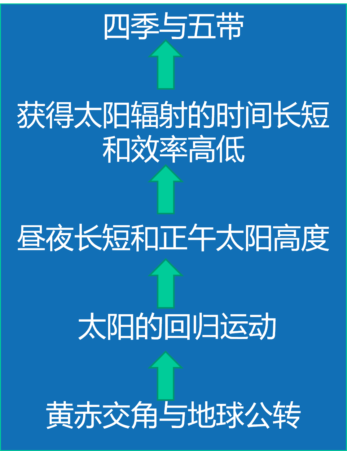 黄赤交角——太阳的回归运动——四季和五带。