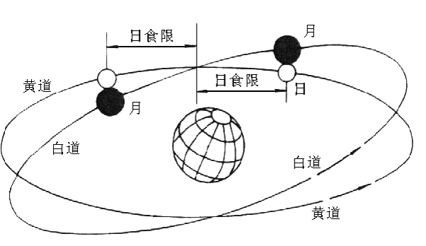 日食限:初亏时,黄白交点到日轮中心的一段黄经差,叫日食限。