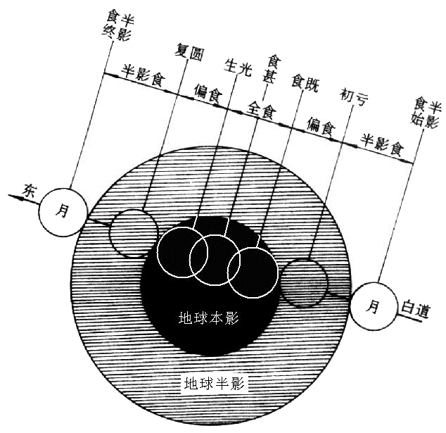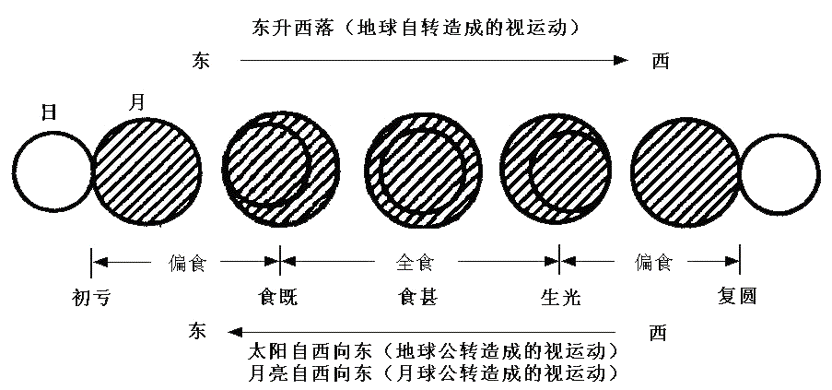食相:全(环)食5个:初亏、食既、食甚、生光、复圆。偏食3个:初亏、食甚、复圆。