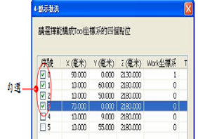 4. 将所有欲关联此坐标系的点位的【 Work】栏位点选为WorkN.