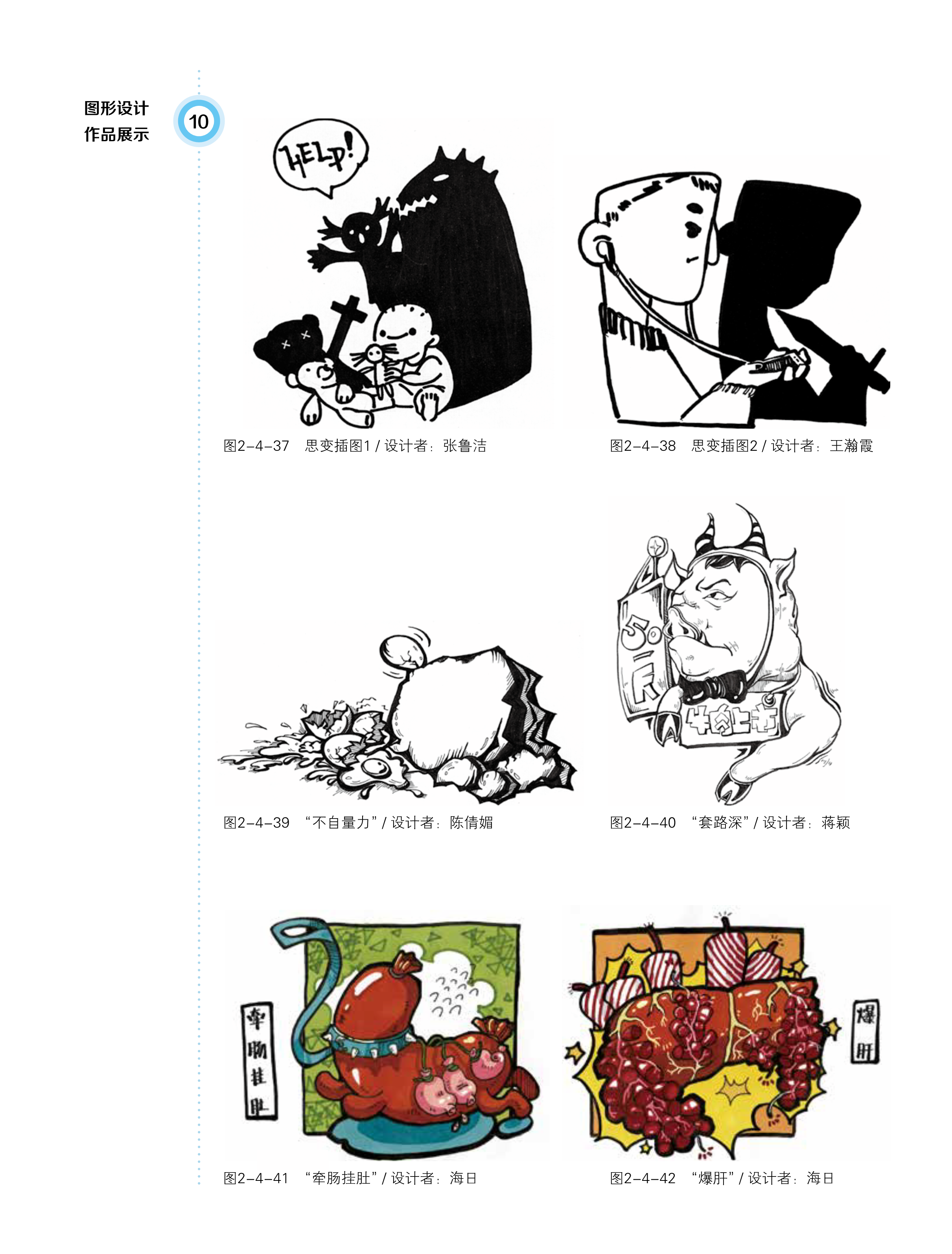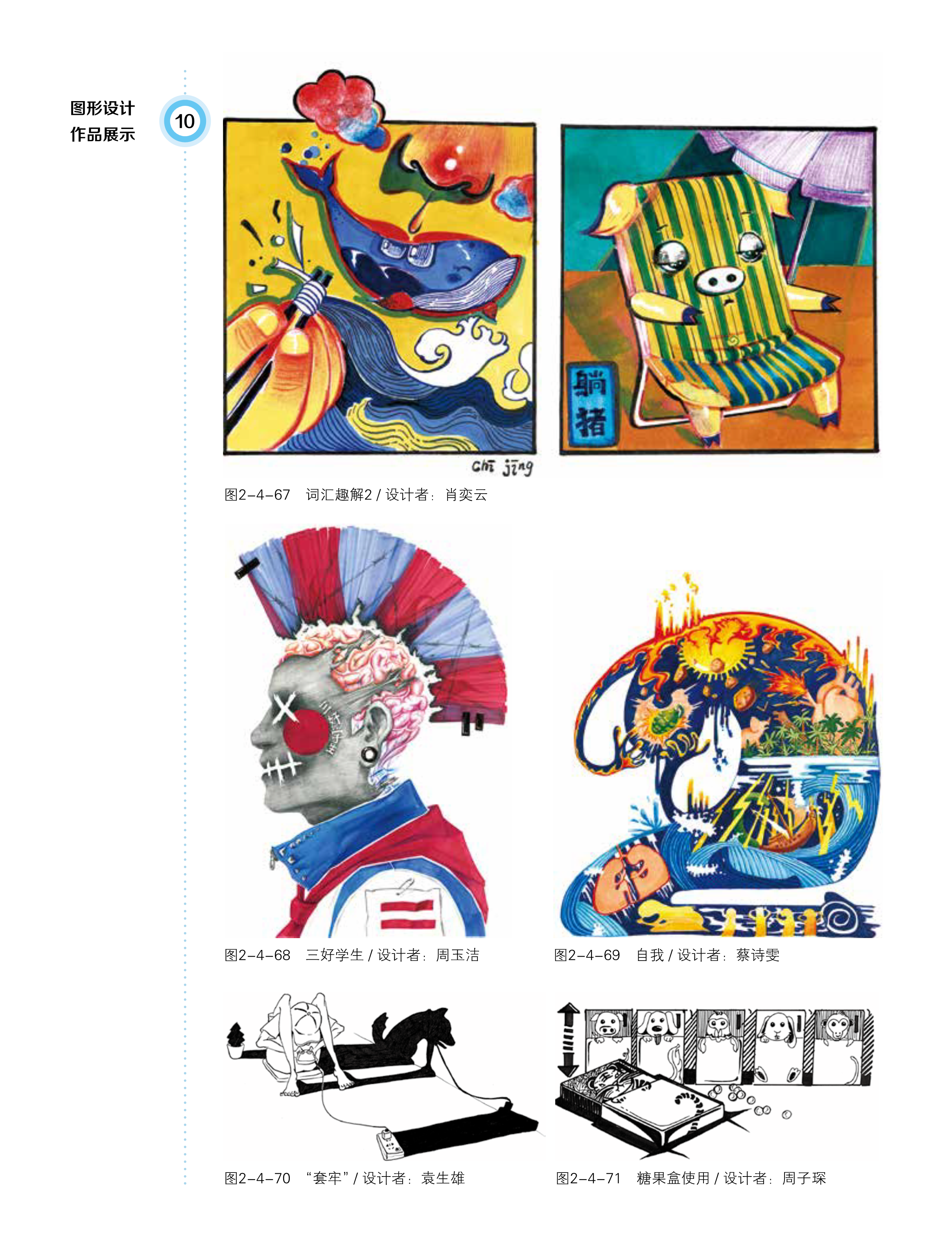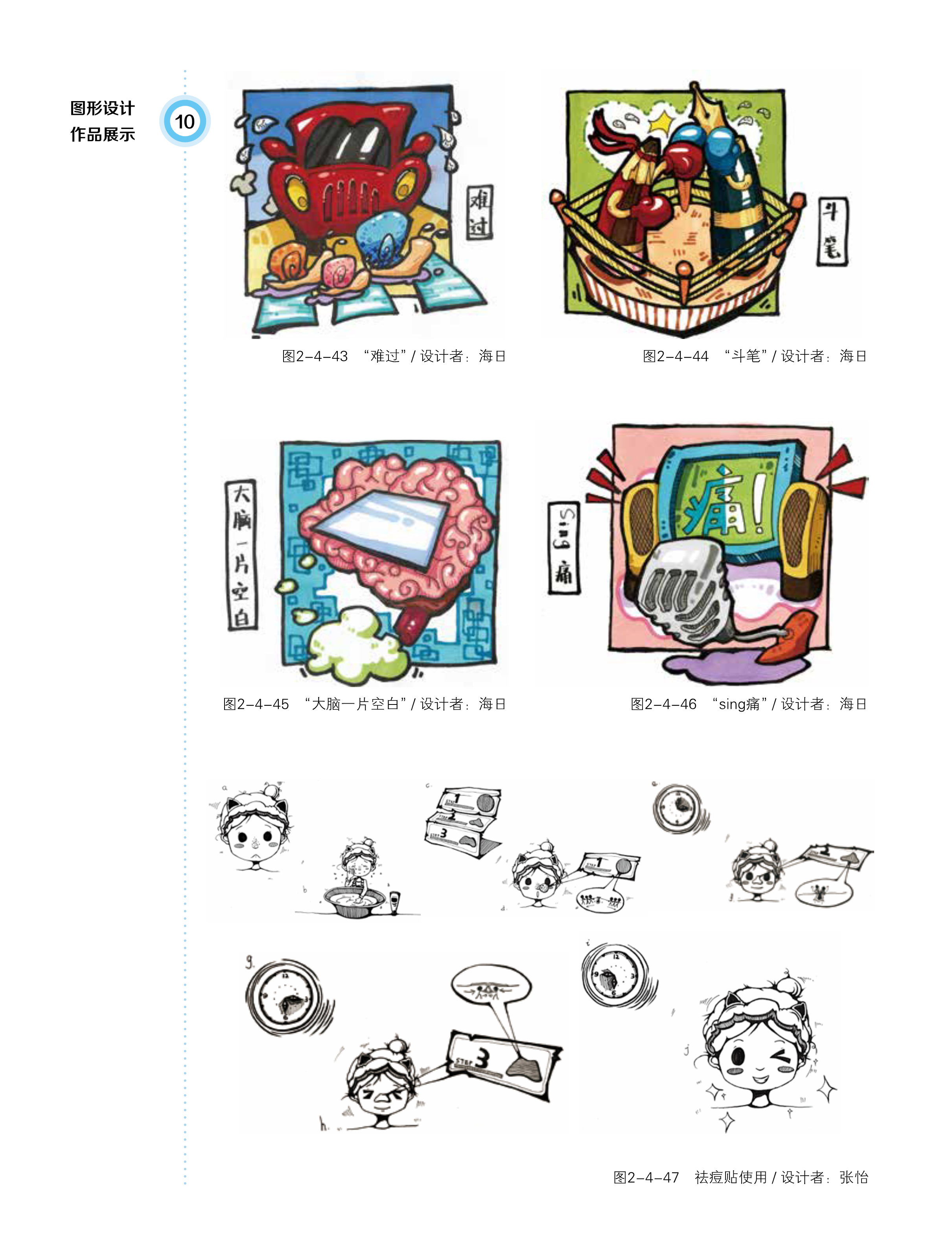 在做图形的传达性设计训练的时候,学生需要了解设计对象最基本的性质和特点,在进行图形表达的时候要以规范流程来表现设计的秩序性。通过观察和理解,利用视觉的表现,促进创新性思维的形成。从认知、了解、熟识,再到创作和重复修改的过程,这种设计过程一般需要经过项目解读—文化调研—确定对象—确定表现步骤—相关联想—传达性推敲—草图推敲—调整润色—汇报展示等多个步骤。