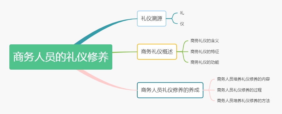 本节内容分三部分:第一部分讲述礼仪起源,了解古今礼仪的传承和发展历程;第二部分介绍商务人员礼仪修养的含义、特征和功能;第三部分讲述商务人员礼仪修养的养成。