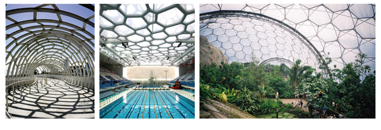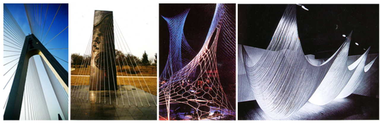拉伸结构是指利用线材产生强反抗力的原理来制作立体造型的。使用拉伸结构时,支架和底座要牢固,能承受拉伸的力量,不会变形和晃动。拉伸结构具有较强的视觉力度感和形态美感