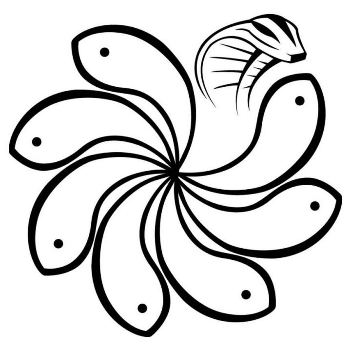 构成放射感的三要素:一、是中心点的形态,它包括有中心点的位置、大小、形状,中心越小,放射感越强;二、骨格的构成,越趋于中心点越密集的骨格形成集中的放射感,越趋于中心点越疏的骨格形成扩散感;三、放射骨格上单元形的形态。