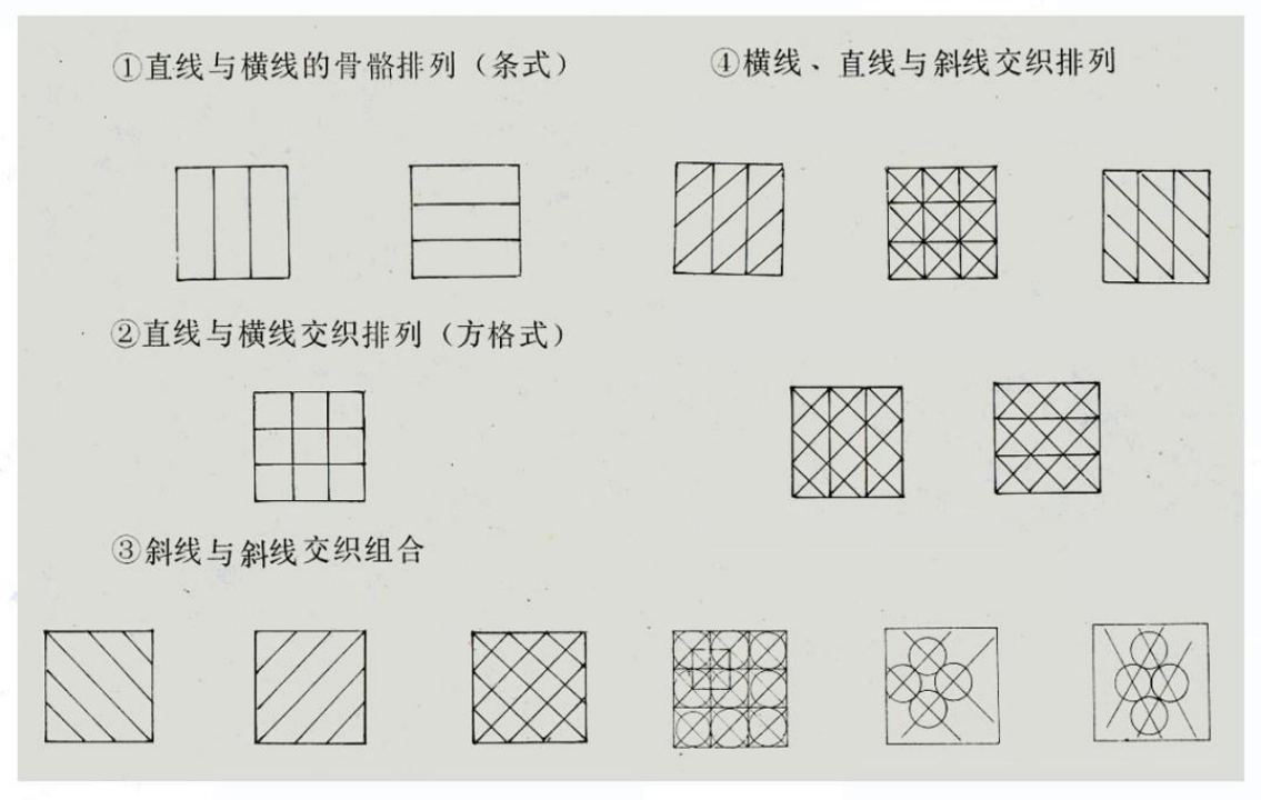 骨格是构成手法中一个重要概念,骨格是构成画面形态组架关系的框架脉络,骨格将限定的空间划分为均等的小空间,使单元形能在空间中有规律地排列布局,通过对骨格组织的变化,就直接决定了单元形最后构成的结果,所以骨格的作用是管辖和编排单元形。