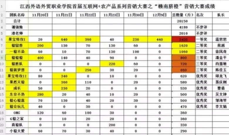 我校有位优秀毕业生谢锦灿,赣州人,17届电商专业毕业。在校时期一直积极利用专业知识参与竞赛、创业。在2016年,他在我院的大力支持和老师的指导下,以学院名义举办了第一届脐橙营销大赛,激励身边同学通过线上线下推广帮助家乡销售赣南脐橙,总销售有近5万斤。所销售的利润中拿出来将近1万元去捐赠给贫困地区学生或者老人。