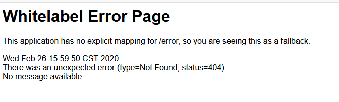 在项目名称上右键->Run as -> Spring Boot App ,可以在控制台看到输出信息。打开浏览器,访问localhost:8080,看到以下页面说明项目创建成功。